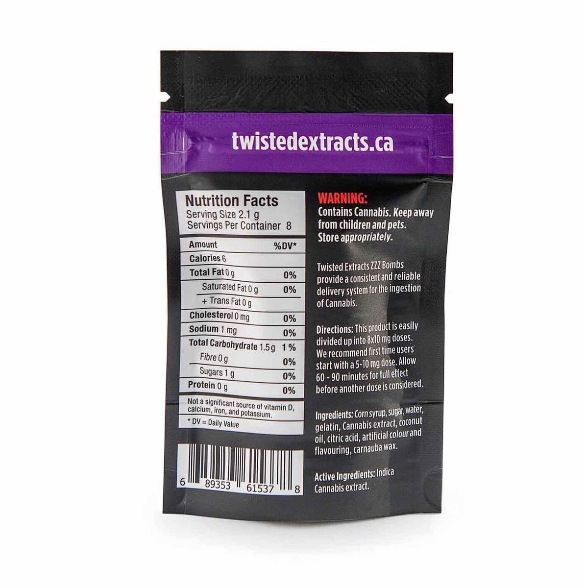 Ingredients: Corn Syrup, Sugar, Gelatin, Cannabis Extract, Coconut Oil, Citric Acid, Corn Starch, Sorbitol, Artificial Flavouring.